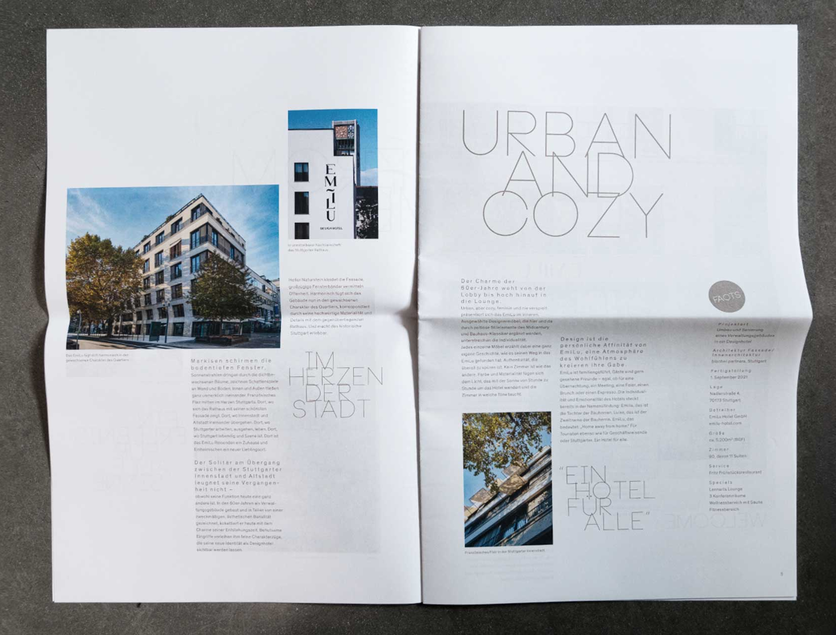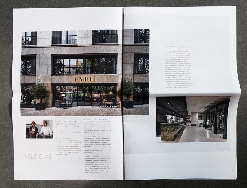 A special edition is dedicated entirely to the opening of the EmiLu Design Hotel. The newspaper offers an attractive editorial section with information on the architecture and interior design of the hotel, background information and exclusive interviews with the architects and owners.