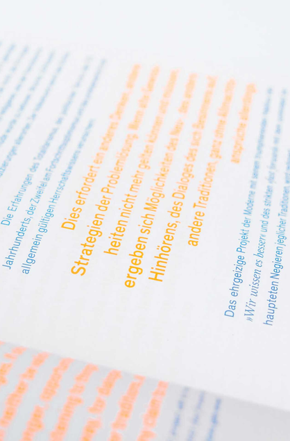 Neben der Zusammenfassung der Meilensteine, wird in vier zeitumspannenden Features über gesellschaftliche, politische und kulturelle Veränderungen reflektiert, die die Arbeit an und mit Räumen beeinflussen, ihnen in der Wechselwirkung einen Kontext eingeben. Wandlungen, die die Vergangenheit mit der Gegenwart unweigerlich verbinden. Die Gegenwart zu dem machen, was sie ist. Im fünften Essay erfolgt die Verknüpfung zu einer gemeinsamen Antwort, für die die Marke blocher partners steht: Transdisziplinarität.