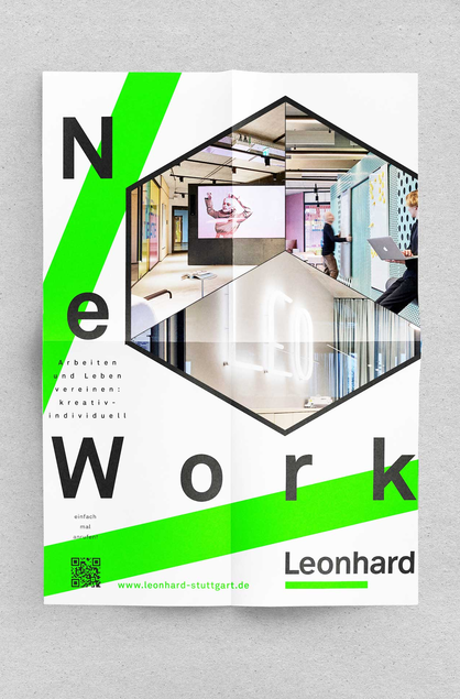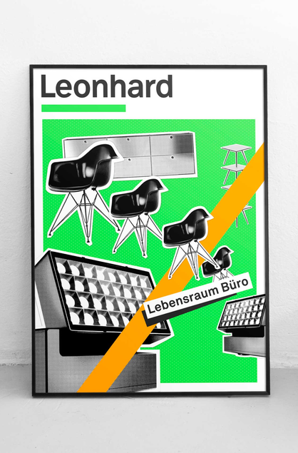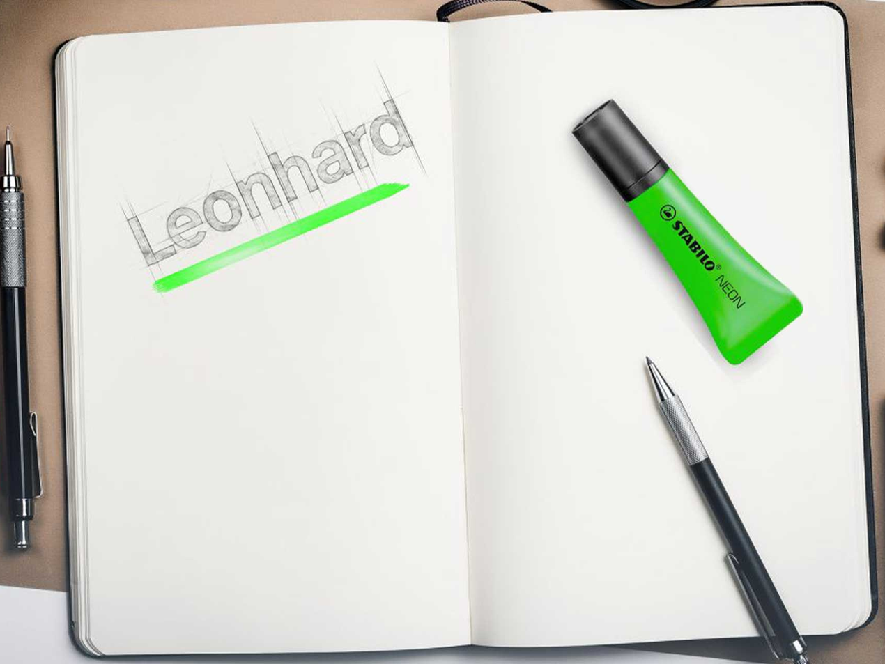 Am Anfang war ein Strich. Der neongrüne Strich eines Textmarkers, dem Gegenstand, der vermutlich in jedem Büro der Welt zuhause sein dürfte. Davon inspiriert gestaltete die Designagentur typenraum das neue, modern und zeitlos wirkende Corporate Design von Leonhard, welches nun das visuelle Erscheinungsbild des Unternehmens prägt. Die Idee des Markierens zieht sich dabei als roter Faden durch das gesamte Design. Die Basis des Keyvisuals bildet dabei ein extrem vergrößertes geodätisches Modell, das in Ausschnitten auf vielen mit dem Corporate Design gebrandeten Objekten auftaucht. Für das Logo des Büro- und Objekteinrichters aus Filderstadt wurden zwei Varianten erstellt: Eine mit dem markanten, neongrünen Strich und eine zweite mit dem Claim „Lebensraum Büro“, die überall dort eingesetzt wird, wo es einer Konkretisierung des Firmennamens bedarf.